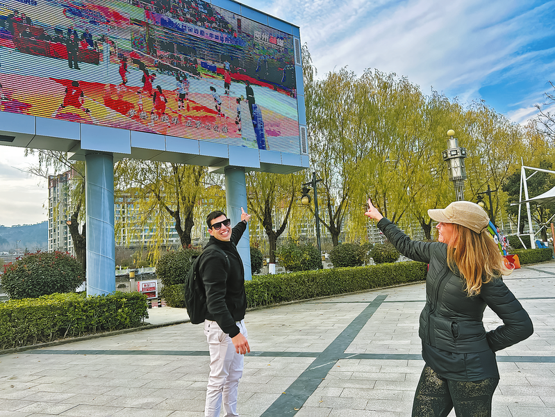 十二月八日,我市丹鶴樓廣場(chǎng)電子大屏上播放的U15世界中學(xué)生排球錦標(biāo)賽宣傳視頻,引起了幾位外國友人的關(guān)注。近日,我市通過報(bào)紙、電視、網(wǎng)絡(luò)、戶外大屏等各類平臺(tái)宣傳賽事,不斷擦亮“賽事之城”新名片。(本報(bào)記者 肖云 攝)
