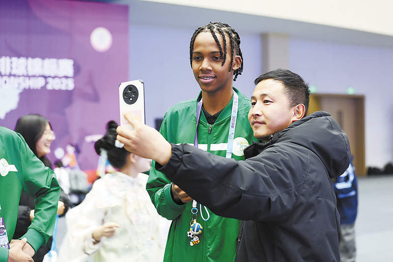 12月9日晚,“2025年U15世界中學生排球錦標賽國家之夜”活動在商洛市職業(yè)技術(shù)學院大學生活動中心舉行,運動員與球迷合影。 (本報記者 石 磊 攝)