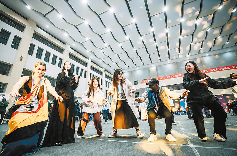 商洛市初級中學(xué)的操場上,巴西隊女隊員主動教授排球啦啦操,歡快的南美節(jié)奏與陣陣笑聲交織在一起,大家盡情釋放著熱情與活力。各校精心設(shè)置的非遺展示區(qū)內(nèi),書法、剪紙等體驗項目更是吸引了眾多外國小將駐足參與。他們手執(zhí)毛筆一筆一畫書寫漢字,持剪刀小心翼翼剪出圖案,在親身實踐中感悟中華文化的獨特韻味。