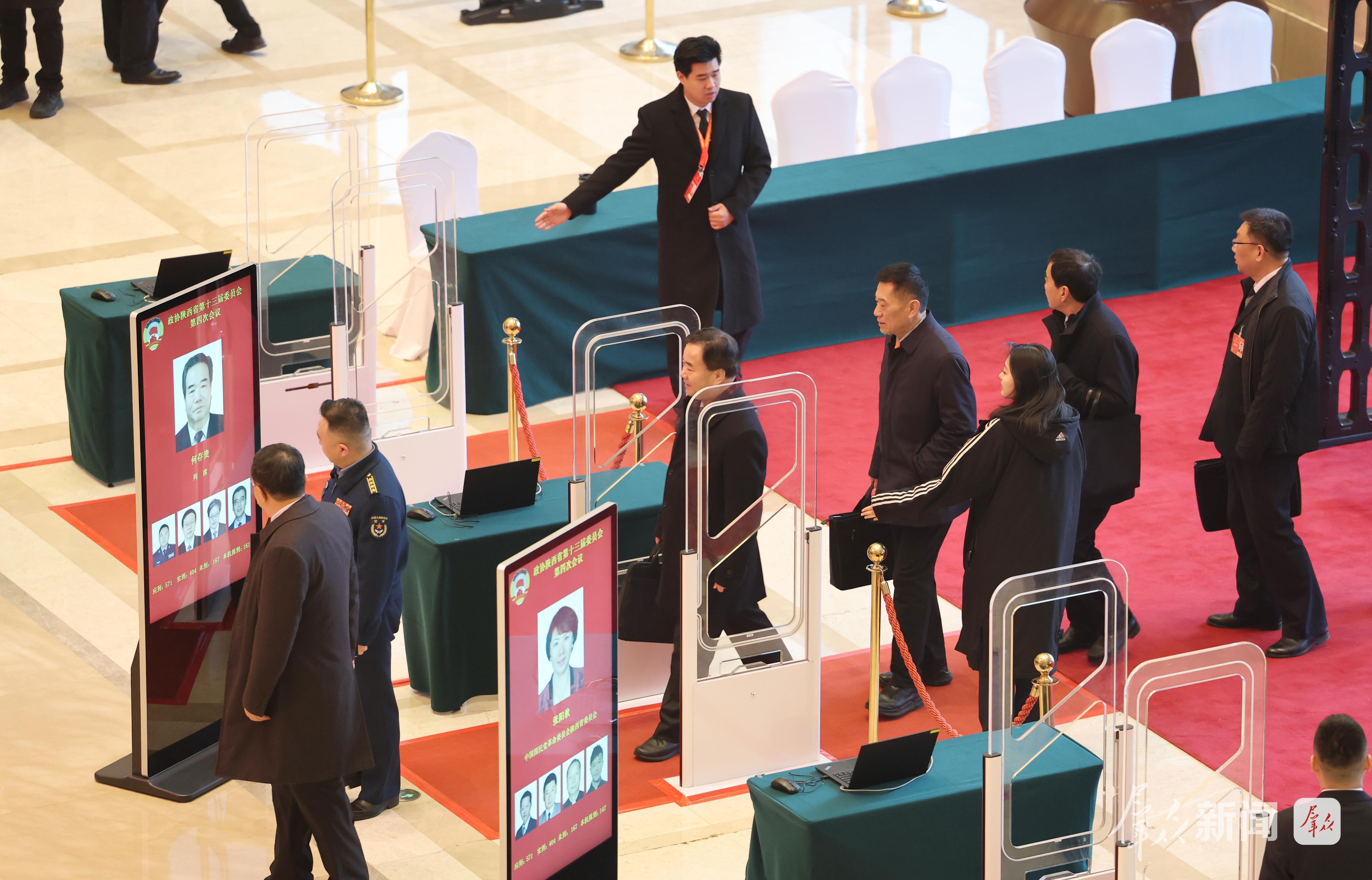 開幕會前,政協(xié)委員和列席人員步入會場。