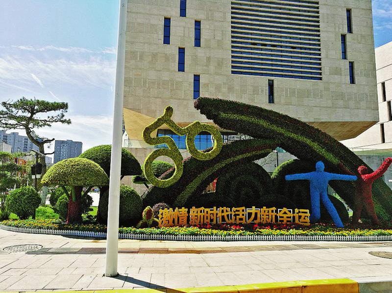 銀杏公園里新建的綠色景觀凸現(xiàn)十四運會元素