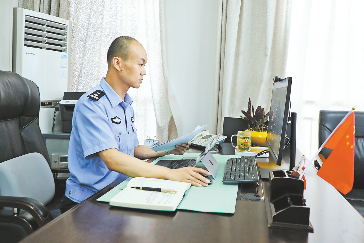 魚建發(fā)今年48歲,已從警25年,妻子謝春已經(jīng)習(xí)慣了他常態(tài)化的加班。“最近半年多,我們一個(gè)月在一起吃不了一頓飯。他晚上回來時(shí),我睡著了,他醒來時(shí),我去上班了,總是錯(cuò)過。”謝春無(wú)奈地笑著說,“但是,我還是會(huì)支持他。”