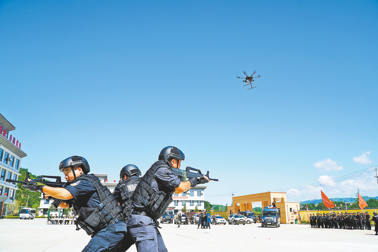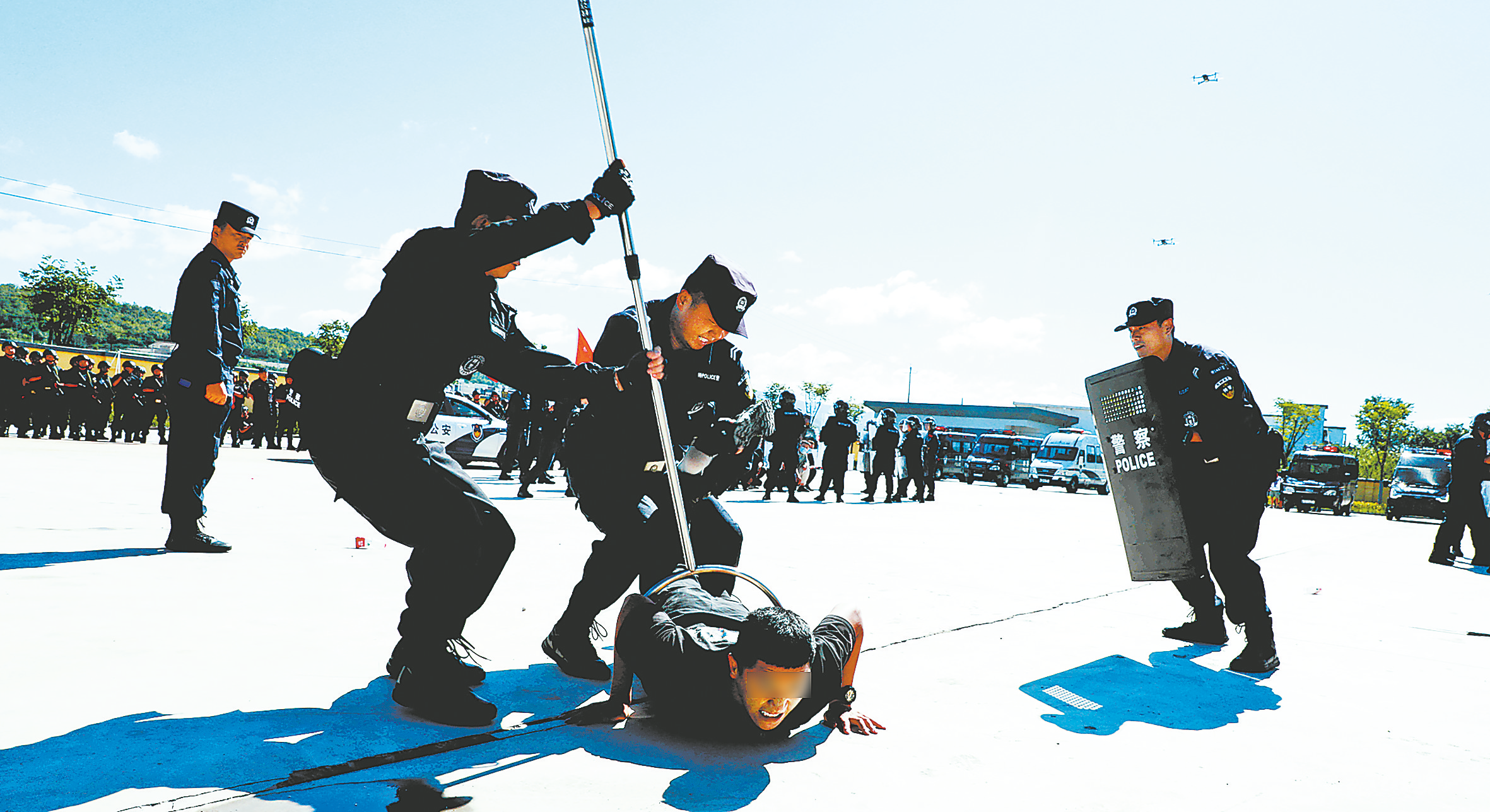 活動(dòng)中,參賽隊(duì)員先后實(shí)戰(zhàn)演練了處置大規(guī)模群體性事件、設(shè)卡武裝盤查、街面巡邏盤查、無(wú)人機(jī)偵查反制以及最小作戰(zhàn)單元處置爆炸、縱火、駕車暴力沖撞等8個(gè)科目,完成了5公里武裝越野、綜合體能、手槍分解結(jié)合精度射擊、突擊步槍應(yīng)用射擊、狙擊步槍應(yīng)用射擊等5個(gè)比武競(jìng)賽科目。參演參賽隊(duì)員充分發(fā)揚(yáng)“特別能吃苦、特別能戰(zhàn)斗、特別能奉獻(xiàn)”的敬業(yè)精神,實(shí)現(xiàn)處突集結(jié)迅速、指揮配合有力、協(xié)同作戰(zhàn)有序、運(yùn)轉(zhuǎn)調(diào)度高效,達(dá)到了比武競(jìng)賽活動(dòng)預(yù)期效果。