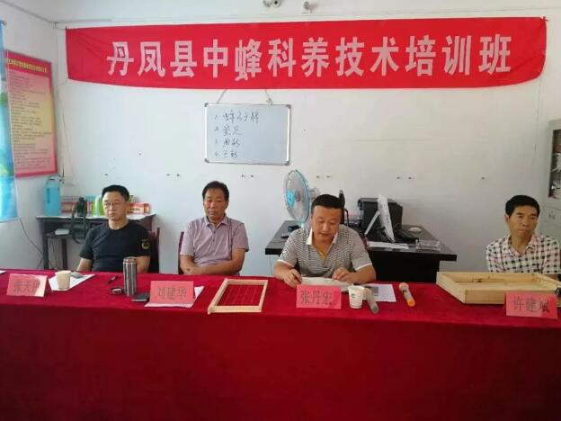 此次活動(dòng)旨在解決中蜂養(yǎng)殖戶生產(chǎn)生活中遇到的實(shí)際技術(shù)難題,幫助農(nóng)民提升使用新技術(shù)、新成果的能力,增加經(jīng)濟(jì)收入,達(dá)到脫貧致富的目的。培訓(xùn)會(huì)內(nèi)容主要分為五項(xiàng),第一項(xiàng)由花瓶子鎮(zhèn)副鎮(zhèn)長(zhǎng)張丹宏明確培訓(xùn)要求,第二項(xiàng)由丹鳳中蜂科養(yǎng)協(xié)會(huì)劉建華會(huì)長(zhǎng)對(duì)中蜂科養(yǎng)日常管理進(jìn)行培訓(xùn),第三項(xiàng)由協(xié)會(huì)張?zhí)烀窀睍?huì)長(zhǎng)對(duì)分蜂以及蜂王保護(hù)技巧進(jìn)行現(xiàn)場(chǎng)講解,第四項(xiàng)由協(xié)會(huì)技術(shù)指導(dǎo)員許建斌對(duì)黑蜂隔離技術(shù)進(jìn)行現(xiàn)場(chǎng)演示,最后由參會(huì)人員到丹鳳縣煙草專賣局駐油房坪村第一書記馮凱的蜂場(chǎng)進(jìn)行實(shí)地觀摩,養(yǎng)蜂協(xié)會(huì)專家對(duì)參會(huì)人員提出的問(wèn)題進(jìn)行現(xiàn)場(chǎng)解答。