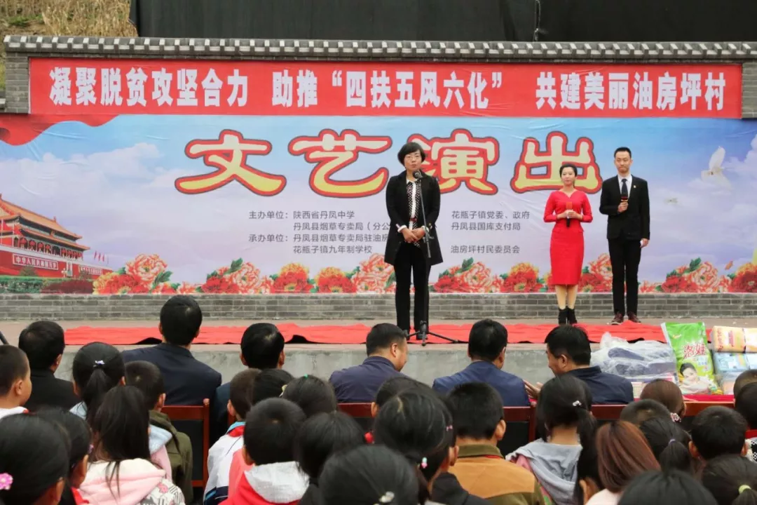 銳意扶貧播大愛(ài),勤勞致富奔小康,正當(dāng)脫貧攻堅(jiān)進(jìn)入攻堅(jiān)拔寨的沖刺階段,10月17日,在舉國(guó)上下開(kāi)展“第五個(gè)全國(guó)扶貧日”之際,由陜西省丹鳳中學(xué)、花瓶子鎮(zhèn)黨委政府、丹鳳縣煙草專(zhuān)賣(mài)局、丹鳳縣國(guó)庫(kù)支付局主辦,丹鳳縣煙草專(zhuān)賣(mài)局駐油房坪村工作隊(duì)、花瓶子鎮(zhèn)九年制學(xué)校、油房坪村民委員會(huì)共同舉辦《凝聚脫貧攻堅(jiān)合力、助推“四扶五風(fēng)六化”共建美麗油房坪村》文藝演出。