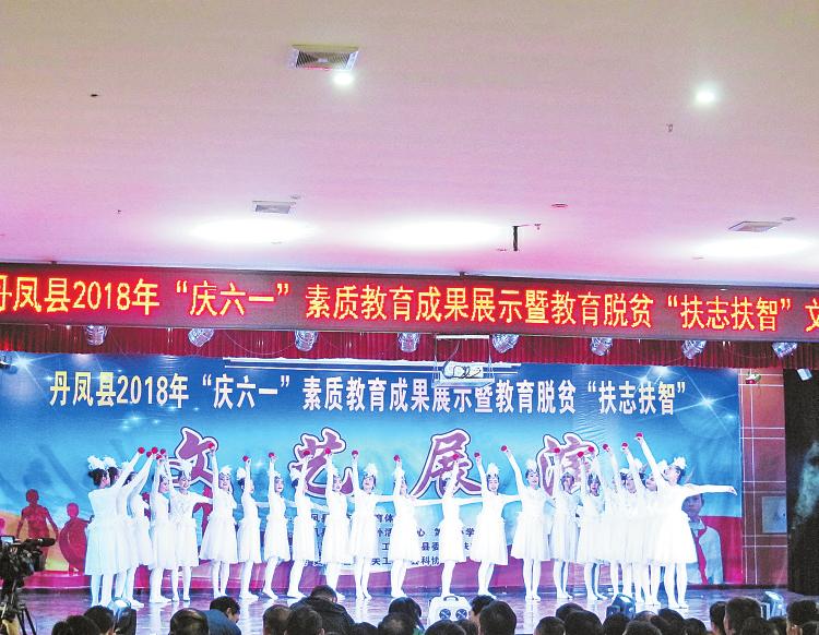 丹鳳縣舉辦了2018年“慶六一”素質(zhì)教育成果展示暨“扶志扶智”文藝匯演活動(dòng)。各中小學(xué)校高度重視,認(rèn)真組織,制作書(shū)法、繪畫(huà)、剪貼畫(huà)等作品上萬(wàn)件,設(shè)計(jì)制作手工科技等作品3000余件,編制課件、活動(dòng)案例200余篇。參展作品種類眾多,表現(xiàn)形式豐富多彩,展示了全體同學(xué)努力學(xué)習(xí)、全面發(fā)展的熱情,反映了廣大師生對(duì)美的渴望、對(duì)祖國(guó)的無(wú)限熱愛(ài),更體現(xiàn)了同學(xué)們立志脫貧的信心和決心。“扶志扶智”文藝匯演活動(dòng)由縣科教體局主辦,縣青少年校外活動(dòng)中心和第三小學(xué)承辦,并得到了縣委宣傳部、縣總工會(huì)、團(tuán)縣委、縣扶貧局、縣婦聯(lián)會(huì)、縣關(guān)工委、縣科協(xié)等單位的大力支持。舉行了文藝展演活動(dòng),全縣共推選出20個(gè)優(yōu)秀節(jié)目參加展演,節(jié)目豐富多樣,涵蓋了舞蹈、情景劇、小品、快板、武術(shù)、演唱等多個(gè)類型。通過(guò)中國(guó)移動(dòng)“和商務(wù)直播”進(jìn)行現(xiàn)場(chǎng)直播,點(diǎn)擊率超過(guò)萬(wàn)人次。