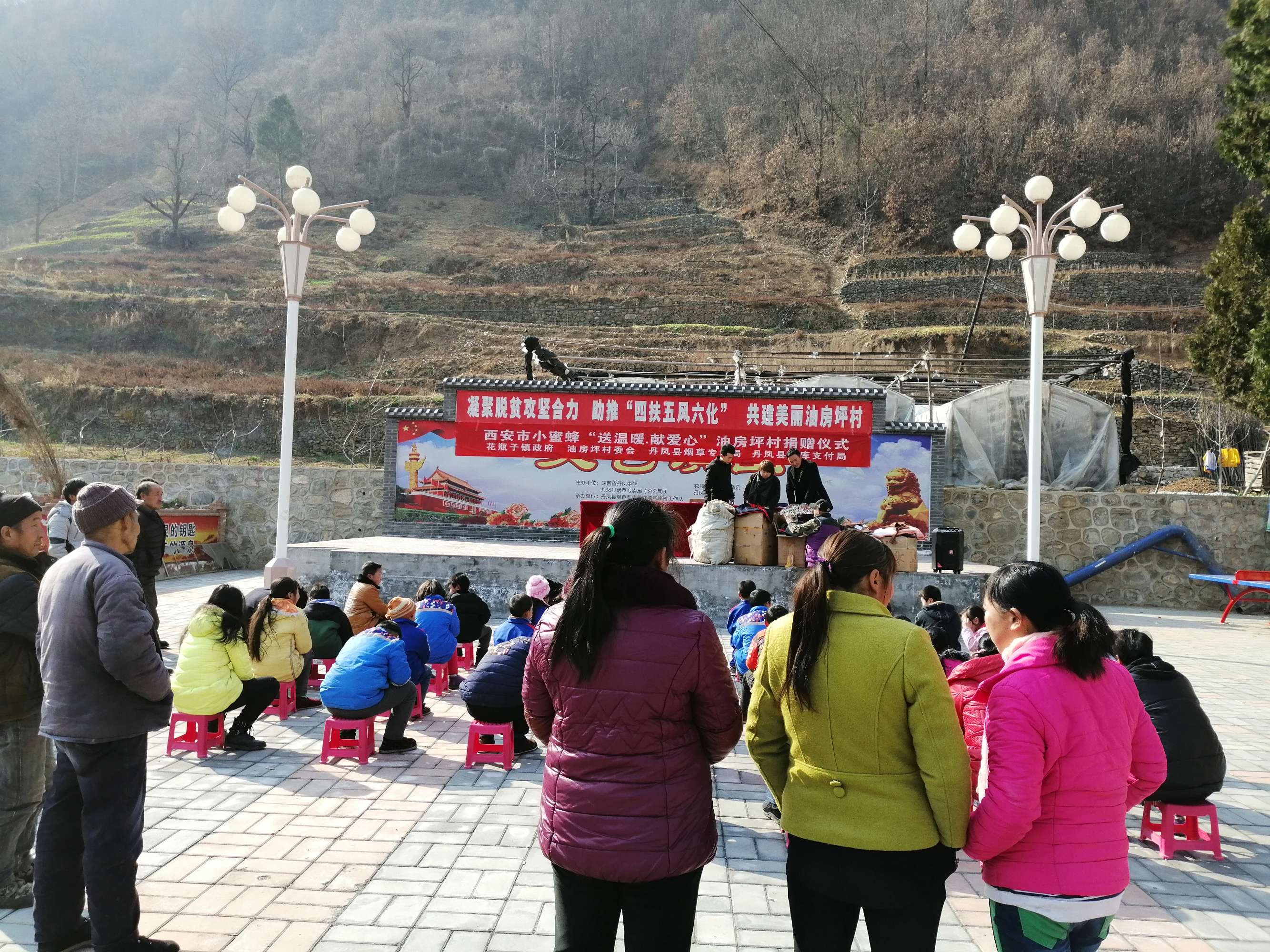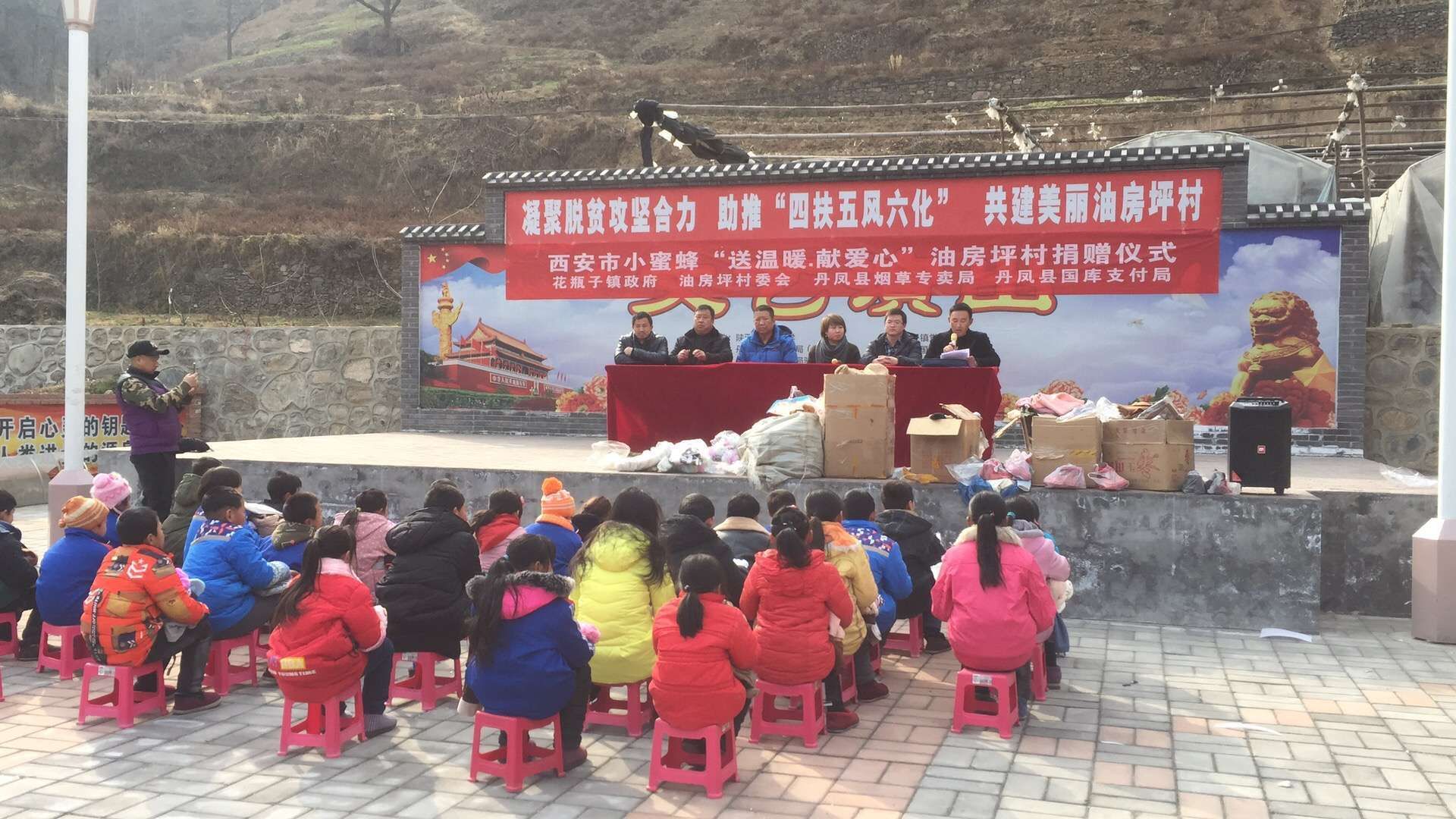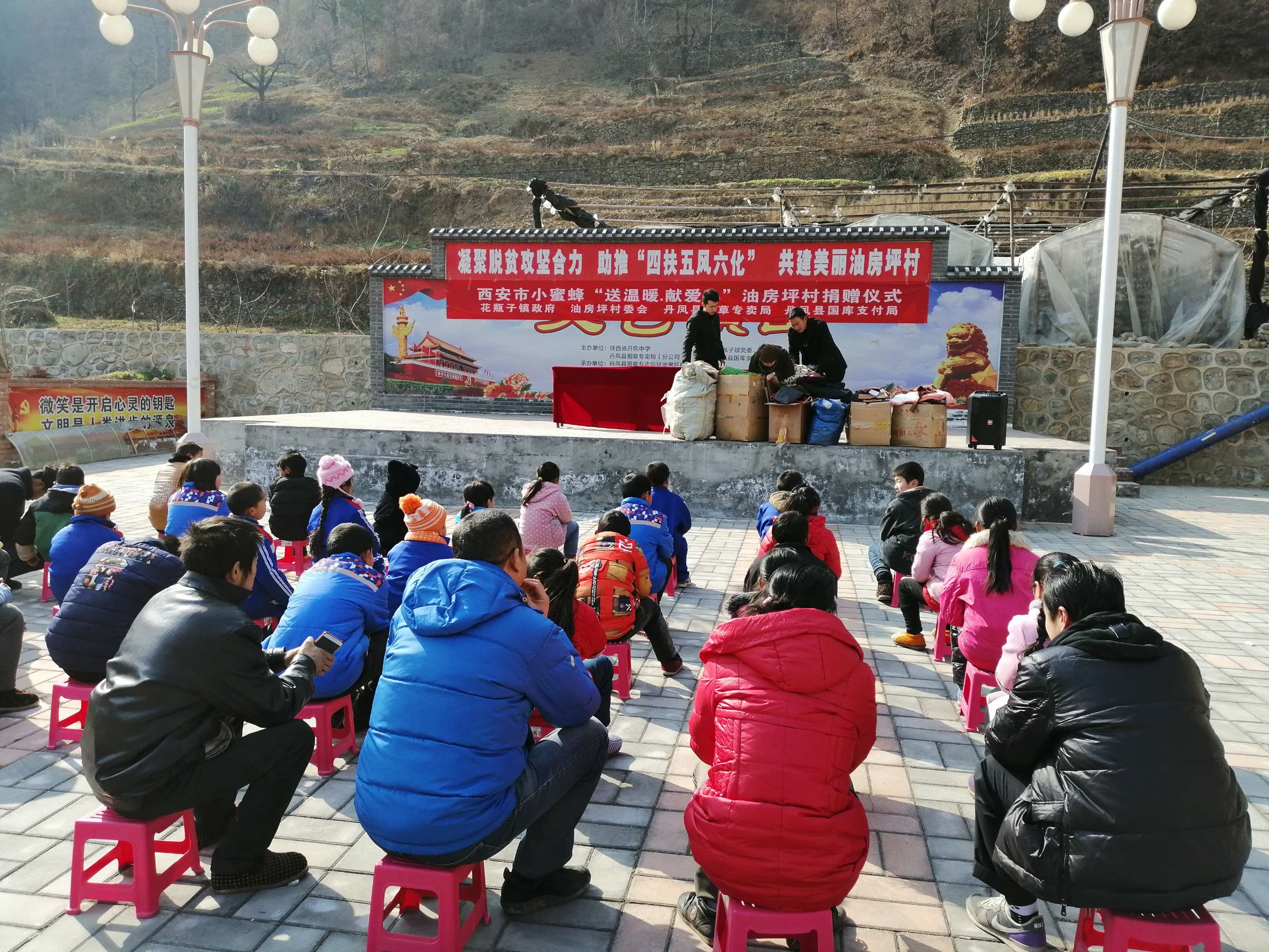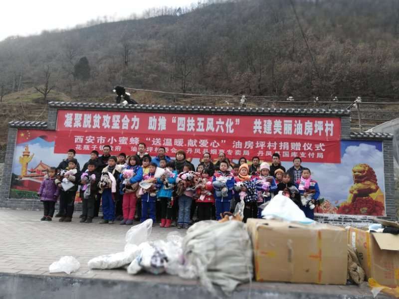 2018年1月19日,西安市小蜜蜂慈善公益組織負責人汪女士,攜手丹鳳縣煙草局黨支部、丹鳳縣國庫支付局黨支部暨花瓶子鎮(zhèn)政府,冒著嚴寒,從西安省城來到油房坪村,開展“送溫暖、獻愛心”溫暖衣發(fā)放儀式,對30名留守兒童發(fā)放羽絨服、保暖內衣、圍巾、耳套、鞋子、裙子等價值1萬余元物品,用實際行動詮釋著人間最質樸的愛,受到捐贈的留守兒童,他們非常感謝黨和人民的關懷以及社會這么多好心人為他們送去的衣物,在以后的生活學習中,學會感恩,以優(yōu)異的成績回報各級領導以及社會的關懷。