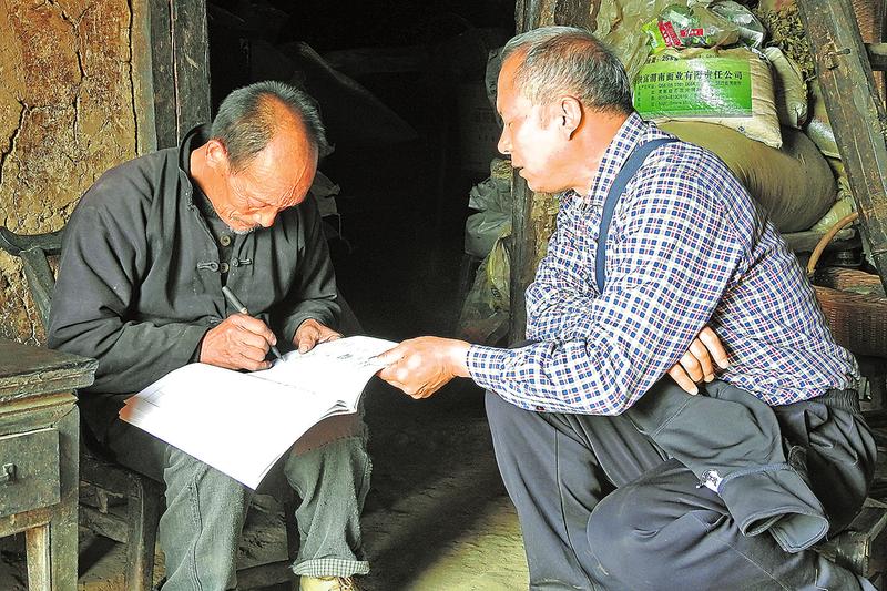 老韓念念不忘的,還有他的包扶戶張治文。老韓去撞溝渠垴時,走了一個半小時。老張的兒子告訴他,光上山就3公里。72歲的老張身材矮小,老伴也年過六旬,兒子張永祥5年前患視網(wǎng)膜脫落,手術(shù)失敗后失明,因長期坐在家里心氣浮躁,臉部發(fā)紅肚子脹。老韓利用周日在縣城為他找醫(yī)生,得知費用很高,便從網(wǎng)上查資料、找驗方,讓他用山上隨處可找的蒲公英、茵陳、車前子、冬忍藤(金銀花蔓)等中草藥治療。張永祥說:“服藥后心不急了,肚子脹也得到緩解。”張治文高興地說:“去年6月,村上給我4只羊,加上親戚給的兩只,現(xiàn)在已繁育到14只,年底能到30只。”