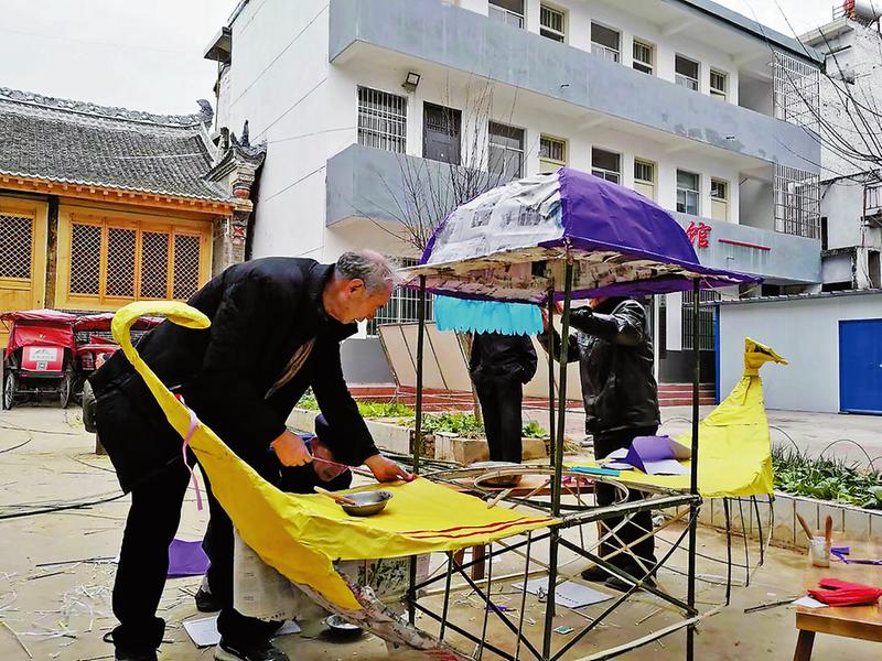 項(xiàng)書(shū)善今年72歲,家住竹林關(guān)村三組,是一名退休教師。據(jù)項(xiàng)老師回憶,他很小的時(shí)候,就對(duì)花燈產(chǎn)生了濃厚的興趣,跟著大人學(xué)習(xí)花燈手藝,獅子頭、龍燈、花燈他都綁過(guò),村上人都知道他有這門(mén)手藝。說(shuō)起花燈,項(xiàng)老師如數(shù)家珍:“花燈的種類(lèi)可多啦,動(dòng)物、植物、人物,只要腦海想到的都可以做出來(lái),金魚(yú)的頭部和尾巴要能夠擺動(dòng),羊的犄角要能夠打架,蝴蝶的翅膀要能扇得動(dòng)。如果是鼠年就要做老鼠,老鼠必須走在最前面……”從二十世紀(jì)80年代起,竹林關(guān)人就開(kāi)始耍花燈,從大年初六到正月十五,把全鎮(zhèn)跑個(gè)遍,最后集中在竹林關(guān)街道進(jìn)行文藝匯演。“好久沒(méi)做花燈了,上次做的獅子由于角度問(wèn)題嘴巴張不開(kāi),后來(lái)大家商量著才做好。”對(duì)于制作花燈,項(xiàng)老師傾注了太多的感情。