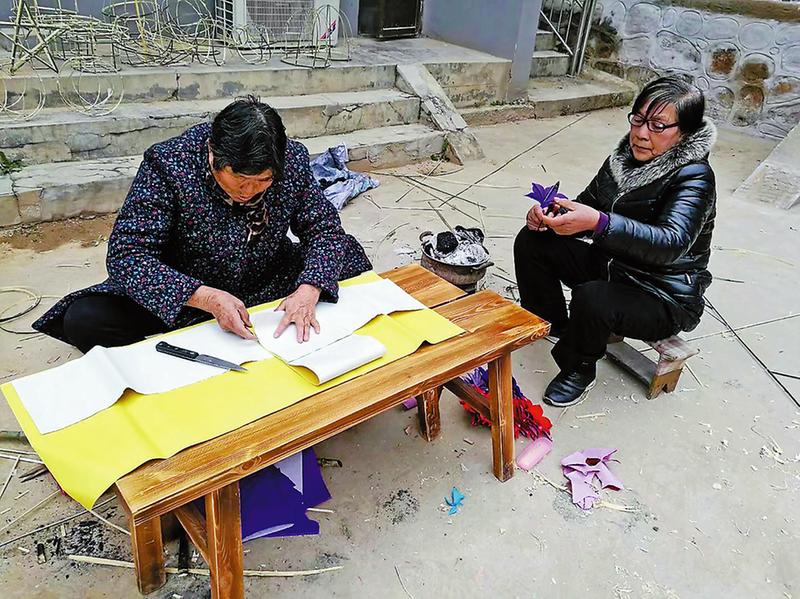在制作花燈的團(tuán)隊(duì)里,王玉蘭主要負(fù)責(zé)裱糊及裝飾。對(duì)于扎花燈,王玉蘭特別有經(jīng)驗(yàn):“以前花燈里用的是蠟,用枸樹(shù)皮做的綿紙裱糊,裱一層,再裱一層。花燈要用很多種顏色,襯托得花紅柳綠,格外喜慶。全架燈48對(duì),半架燈24對(duì),雞、船、魚(yú)、西瓜……心里想的都可以做出來(lái)。”王玉蘭拿出自己拍的花燈視頻,開(kāi)心地講述她與花燈的緣分。花燈的工序雖然算不上復(fù)雜,但也極需耐心,先是根據(jù)圖案定好紙張的大小,再搭配好顏色,按照自己的想象將其糊上,糊起之后還要對(duì)花燈裝點(diǎn)一番。