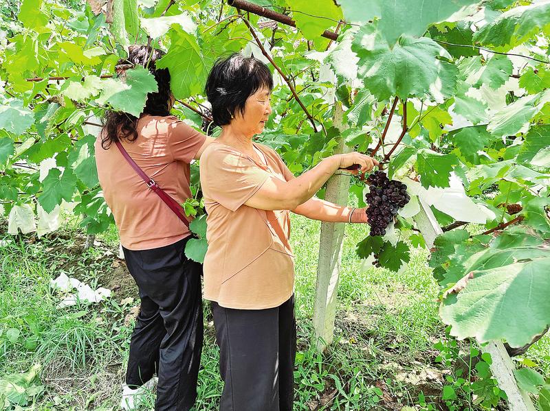 8月15日,在丹鳳縣萬灣村萬香灣無籽藍玫瑰葡萄采摘園內(nèi),村民忙著將葡萄采摘、裝箱。據(jù)了解,該采摘園種植了無籽藍玫瑰葡萄和龍眼葡萄兩個品種,種植面積18畝,可產(chǎn)15噸葡萄,年收入30萬元,帶動周邊20多名群眾就近就業(yè)。(記者 方方 攝)