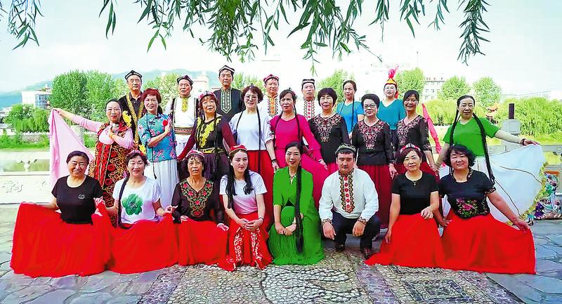 田新芳的建團口號是“只求付出,不求回報”,對待每位團員都如兄弟姐妹一般,教授舞蹈既細心又耐心。她說:“新疆舞自由奔放、健康歡快,學(xué)起來順暢自然,只要熱愛舞蹈,都能學(xué)得會、學(xué)得好。我們是一個團結(jié)友愛的團隊,大家在一起共同收獲健康,收獲快樂!”團員周瑞珍今年65歲,是團里的“大姐大”。她從醫(yī)療系統(tǒng)退休,性格開朗,喜歡唱歌、跳舞、誦讀和柔力球,經(jīng)常參加公益性文藝演出活動,跳了10多年廣場舞。接觸新疆舞后,周瑞珍被其熱情奔放的舞姿和優(yōu)美的旋律所吸引,毅然加盟新疆舞蹈團。她高興地說:“我剛參加進來時還有點自卑,但隨著舞蹈越來越熟練,內(nèi)心的活力被激發(fā)出來,跳出了自信,跳出了健康。”