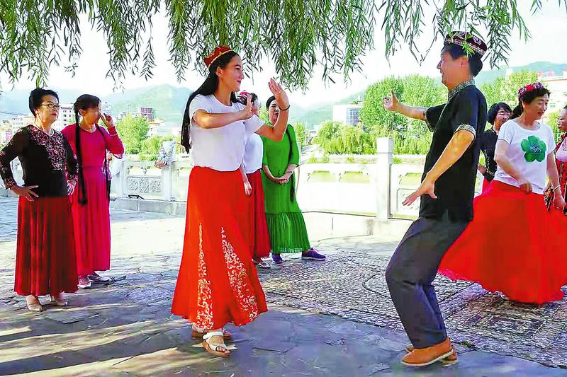2019年6月,丹鳳西域風(fēng)情新疆舞舞蹈團增加到13人,每人出資100元購買了一臺廣場舞手提音響,解決了音響設(shè)備配備不足的難題。當(dāng)年的重陽節(jié),舞蹈團組織團員到商山敬老院參加有關(guān)單位舉辦的慰問演出,為老年人帶去了歡樂。2020年9月30日,該團參加了縣上舉辦的國慶文藝演出。2021年4月,該團參加桃花谷桃花節(jié)開園演出,以獨特的民族風(fēng)情贏得了一片掌聲。