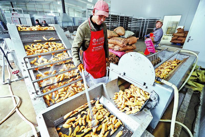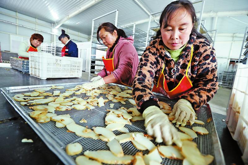 在丹鳳縣良種天麻產(chǎn)業(yè)園,一輛輛滿載天麻的卡車開入園區(qū),工人們卸下一袋袋“土黃金”送入天麻產(chǎn)品加工車間。在成品車間,只見藥用天麻切片、天麻掛面、精細天麻粉和天麻酒等系列深加工產(chǎn)品放滿車間。