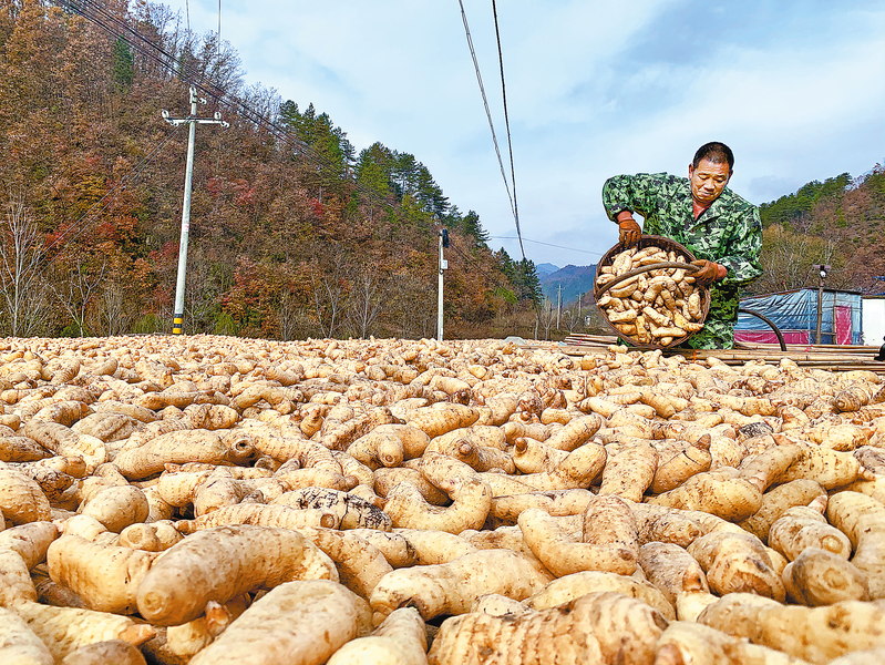晾曬天麻(本報通訊員 王盈琳 攝)