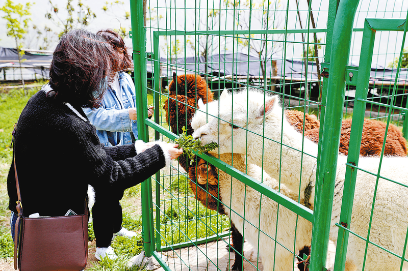 洲河北村現(xiàn)代林業(yè)產(chǎn)業(yè)示范園萌寵樂園里飼養(yǎng)的羊駝、孔雀、鴿子、兔子等萌寵小動物,成為游客打卡地。