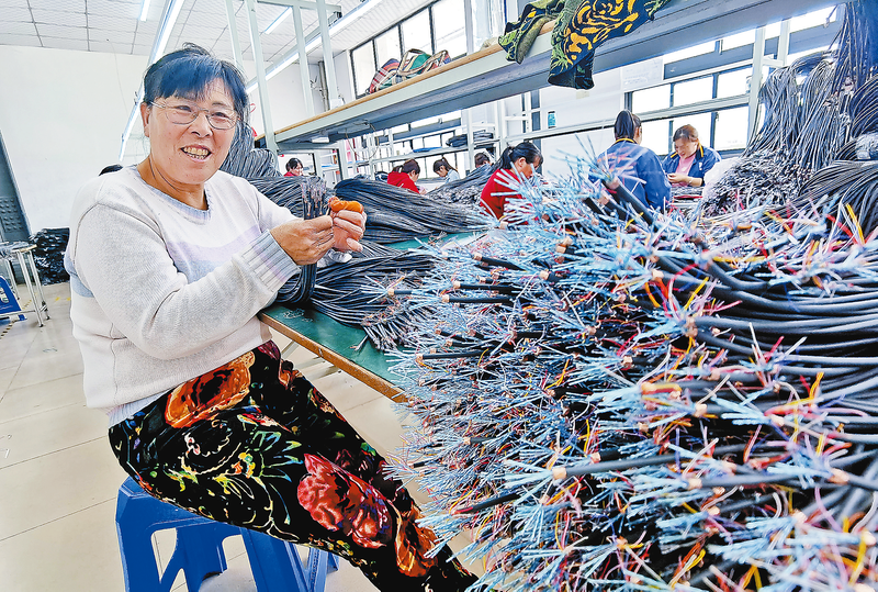 “原材料拉來后,經(jīng)過去外皮、剪編織、包銅箔、挑鋁箔、分線、激光、排線等40多道工序后,一條條高清數(shù)據(jù)線就算完工。這些數(shù)據(jù)線主要用于電視、電腦和播放器。加工后的產(chǎn)品會及時運往東莞市,最后由總公司統(tǒng)一銷往東南亞和歐美。”商洛萬朋輝電子有限公司負責人易仕平說,目前有60多個固定員工在這里集中加工產(chǎn)品,還有100多名“外發(fā)”人員把原材料拿回家加工,最后計件付工資,這樣靈活的加工模式,讓村民顧家、掙錢兩不誤。