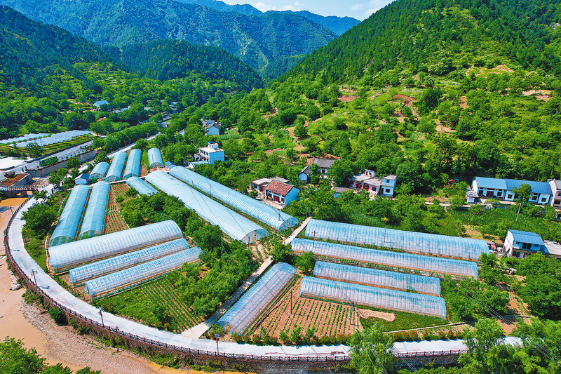 今年以來,丹鳳縣蔡川鎮(zhèn)留仙坪村依托資源優(yōu)勢,把紅色美麗村莊建設(shè)與鄉(xiāng)村振興有機結(jié)合起來,大力發(fā)展大櫻桃、冬棗、西瓜等設(shè)施林果及蔬菜產(chǎn)業(yè),加快村集體經(jīng)濟轉(zhuǎn)型,推進一二三產(chǎn)融合發(fā)展。圖為六月二十六日拍攝的留仙坪村設(shè)施農(nóng)業(yè)大棚。(本報記者米子揚攝)