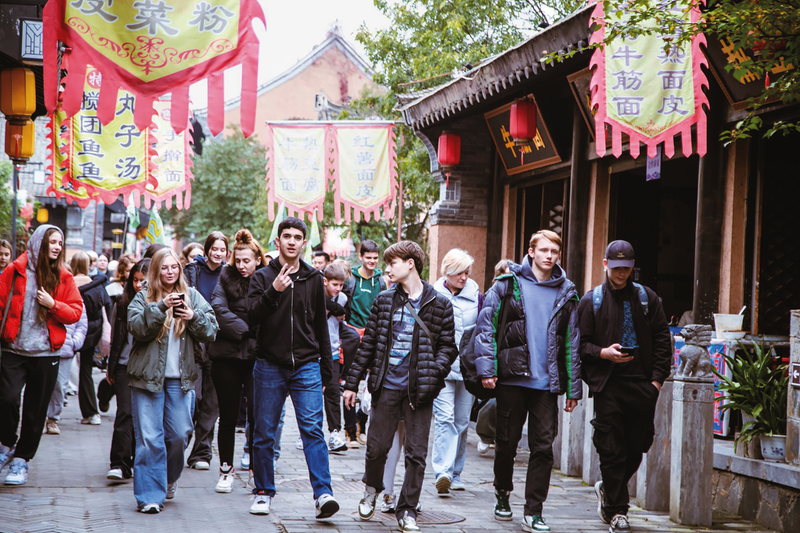 乘坐北京—丹鳳康養(yǎng)旅游專列的俄羅斯游客走進棣花古鎮(zhèn)。