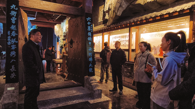 參加培訓人員在陳列館內(nèi)聆聽大秦之門的意象及相關故事。