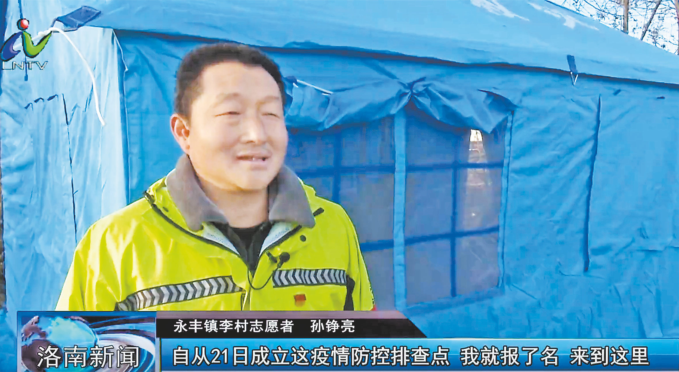 “自從21日村里成立排查點(diǎn),我就報(bào)了名,來到點(diǎn)位,參與值守。”2021年12月31日,洛南電視臺(tái)采訪了孫錚亮,鏡頭里的他語言質(zhì)樸、言辭懇切:“排查點(diǎn)搭了帳篷后,所需要的東西,只要是家里有的,我都帶來。為了洛南人民的平安,我愿意貢獻(xiàn)自己的一份力量,和大家一起做好疫情防控工作。”