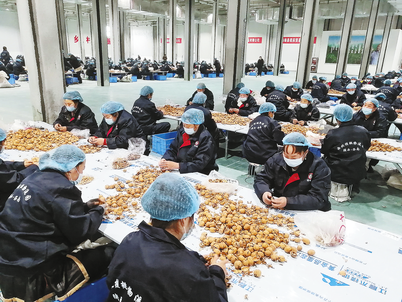 近年來(lái),洛南縣把核桃產(chǎn)業(yè)作為縣域經(jīng)濟(jì)發(fā)展的主導(dǎo)產(chǎn)業(yè),按照“市場(chǎng)+企業(yè)+合作社+基地+農(nóng)戶”的發(fā)展模式,不斷推動(dòng)核桃產(chǎn)業(yè)高質(zhì)量發(fā)展,規(guī)劃建設(shè)了西北地區(qū)功能最完善、現(xiàn)代化程度最高、規(guī)模設(shè)施最大的西北核桃物流園區(qū),該園區(qū)的建成將解決千余名群眾就業(yè),人均年增收2.4萬(wàn)元。圖為工人正在分揀核桃仁。 (本報(bào)通訊員 閆偉鋒 攝)