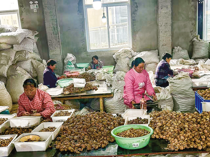 在初加工區(qū),工人正在對核桃進行精細分揀。來自洛源街社區(qū)的張彩云手指翻飛,熟練地將核桃按品級分裝。“在這里上班,既學(xué)到了技術(shù),又能照顧家里,別提心里有多美了。”她笑著說。這個建在群眾家門口的加工點,目前已穩(wěn)定帶動60多名當(dāng)?shù)厝罕妼崿F(xiàn)就業(yè)增收。