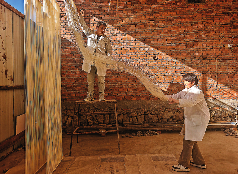 默契協(xié)作 巧手制作掛面