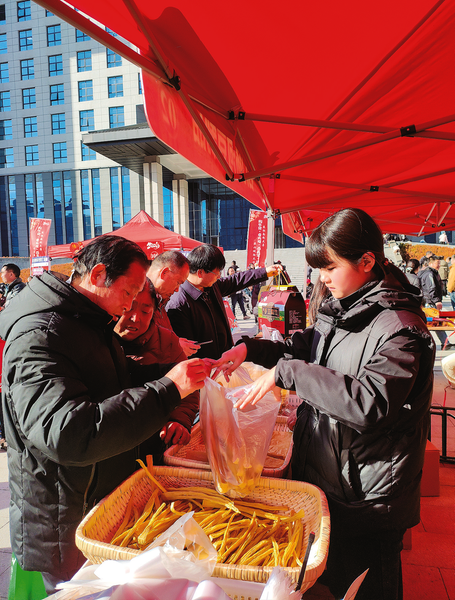 在洛南縣2026年“來洛南趕大集 品山城煙火味”活動(dòng)現(xiàn)場,本地腐竹憑借優(yōu)良品質(zhì)贏得群眾青睞,引得大家爭相選購。