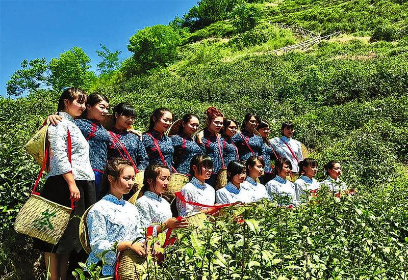 那里是一幅畫(huà),毫不夸張。您可記得,每年四月份各大媒體轉(zhuǎn)發(fā)的最為吸睛的茶山美景,它的原形正是那里。泛著金色的茶園里,采茶人兒頭戴斗笠,身穿藍(lán)碎花布,笑容燦爛。那里是商南茶園,也是商洛的茶葉的名片。