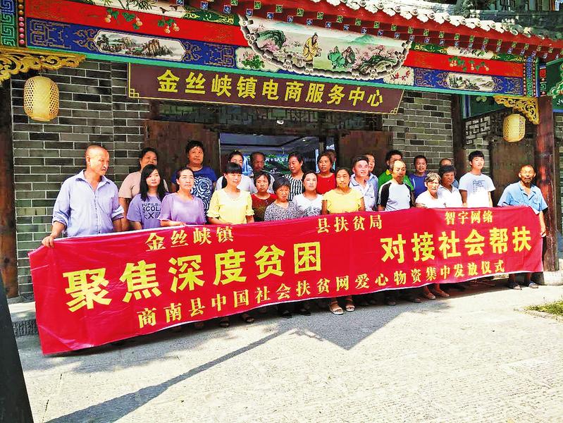借助縣上的優(yōu)惠政策,搶抓脫貧攻堅(jiān)的大好機(jī)遇,商南縣各鎮(zhèn)辦也競相發(fā)展電商產(chǎn)業(yè)。其中,金絲峽鎮(zhèn)投資1000萬元打造了電商脫貧一條街,建成1個高標(biāo)準(zhǔn)鎮(zhèn)電子商務(wù)服務(wù)中心和10個村級電子商務(wù)服務(wù)站點(diǎn),引進(jìn)了阿里巴巴、京東、供銷e家、眾品網(wǎng)、陜西幫幫手等電商平臺,建起覆蓋鎮(zhèn)、村的信息網(wǎng)絡(luò),打通了農(nóng)村網(wǎng)絡(luò)購銷運(yùn)輸配送渠道,大力實(shí)施“電商+旅游+扶貧”的創(chuàng)新融合發(fā)展之路,將金絲峽鎮(zhèn)的“青山綠水”變成群眾的“金山銀山”。