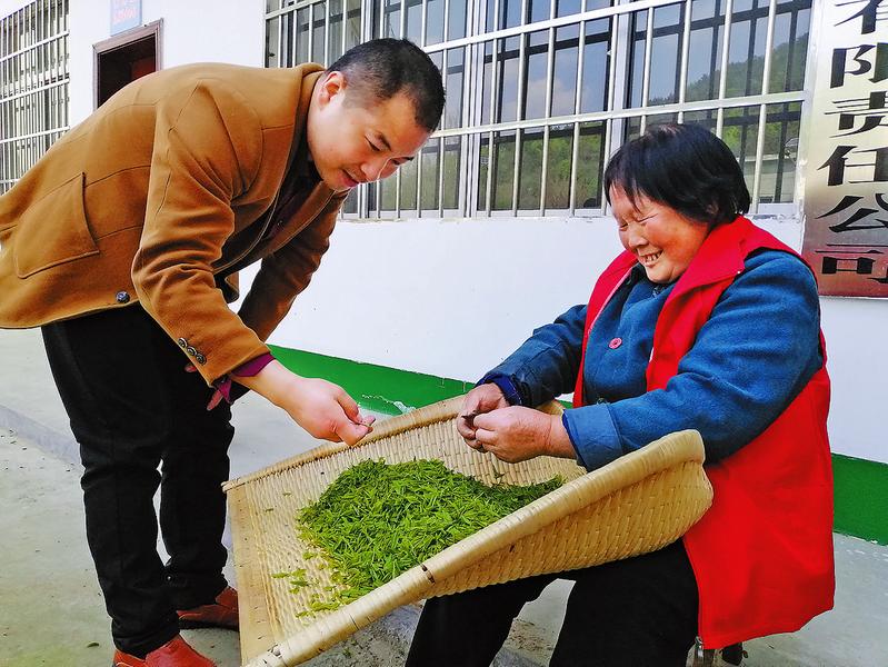 “陳鳳梅2.8斤”“陳改蓮3.4斤”“陳金云2.9斤”……4月10日,商南縣城關街辦捉馬溝村金馬現代農業(yè)園區(qū)院子里,采茶工經過簸篩、分揀、稱重后,依次領取當日勞務報酬。