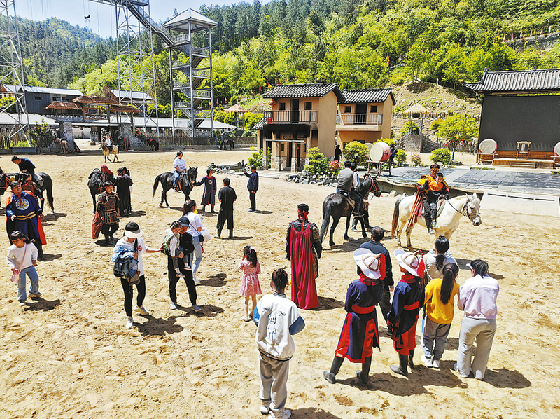 陽城驛景區(qū)也吸引了河南、寧夏、甘肅等地大批游客前來參觀游覽,游客量及營(yíng)業(yè)收入均創(chuàng)歷史新高。為滿足游客需求,該景區(qū)特推出一天三場(chǎng)《風(fēng)云闖王寨》馬戰(zhàn)演藝,觀眾席上人頭攢動(dòng),座無虛席。