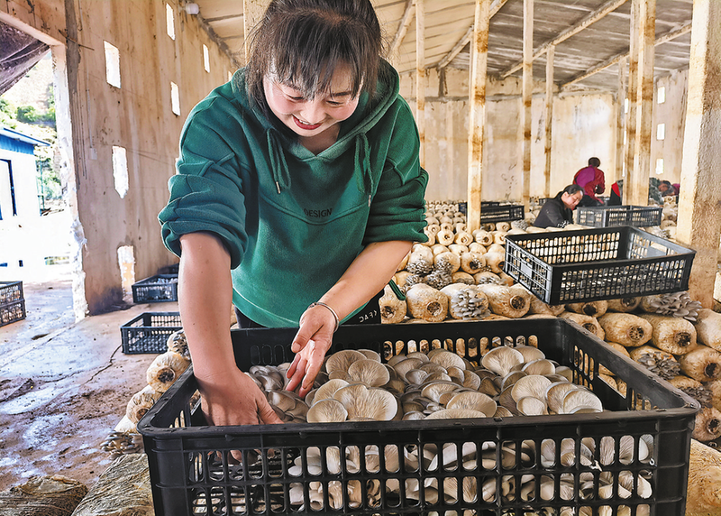 ▽連日來,丹鳳縣鐵峪鋪鎮(zhèn)寺底鋪村食用菌大棚中一片繁忙景象。據(jù)悉,今年以來,該村新發(fā)展村集體經(jīng)濟平菇種植9棚,日產(chǎn)量達4500公斤,帶動20戶群眾增收4000多元。 (本報通訊員 鞏 鵬 攝)