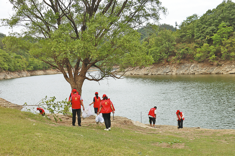 10月15日,商南縣環(huán)保志愿者在縣河水庫(kù)開(kāi)展清潔行動(dòng),用實(shí)際行動(dòng)守護(hù)水源地生態(tài)安全。