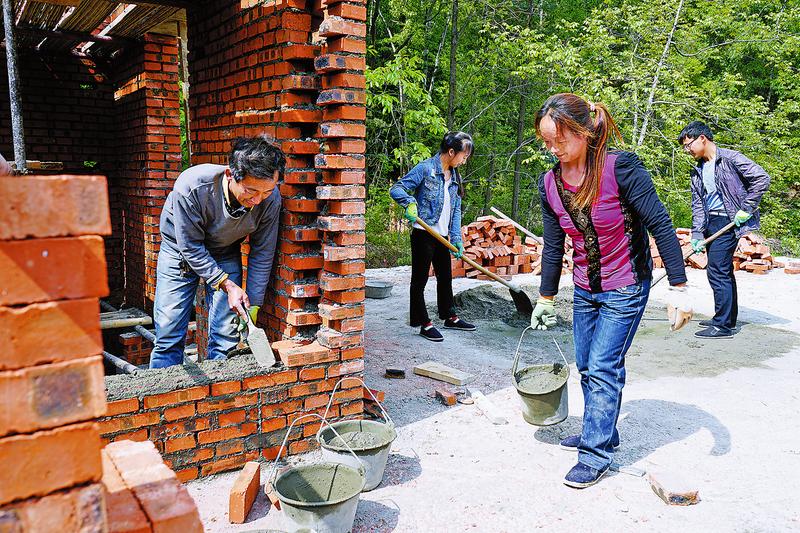 程寶華一家四口在建房工地上勞作程寶華一家四口在建房工地上勞作,有說(shuō)有笑有說(shuō)有笑,其樂(lè)融融其樂(lè)融融。