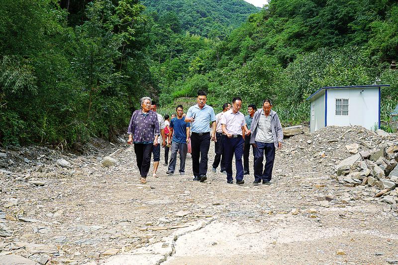 8月11日早晨,記者驅(qū)車來到山陽縣高壩店鎮(zhèn)雙寨村大西溝,雖距離7月23日已過18天,但這個曾經(jīng)美麗寧靜的村莊仍是滿目瘡痍:破碎坎坷的石塊路、被掏空的路基、奄奄一息的玉米、被摧毀的房屋……“大家要堅定信心,如今政策越來越好,有什么困難就積極跟村干部反映,我們一起解決問題。災情發(fā)生了,我們不能等、靠、要,我們要疏通河道,積極開展生產(chǎn)自救,重建家園!”此時,在大樹的綠蔭下,村民成行而坐,高壩店鎮(zhèn)黨委書記董善平正跟村民講解著搬遷政策、生產(chǎn)自救相關(guān)事宜。