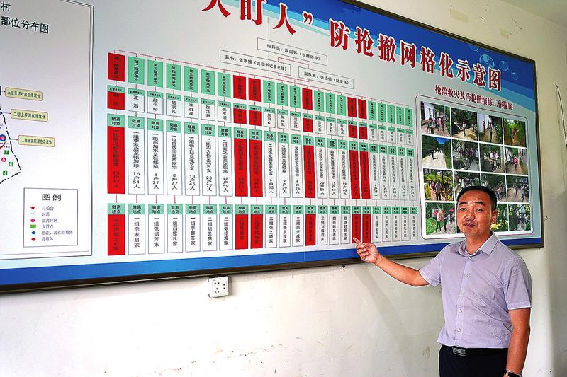 “為保障人民群眾的生命財產(chǎn)安全,按照‘寧重勿缺、不漏一人’的原則,將全鎮(zhèn)22個村(社區(qū))14536戶43940名群眾,劃分‘人盯人’防搶撤片區(qū)730個,設立撤離安置點424個,安排盯撤責任人789人,并逐一配備保障物資、組織開展防搶撤應急演練,確保明顯雨情汛情來臨可防可控。特別是對轄區(qū)地質(zhì)災害隱患點、道路交通、水庫、山洪溝域等防汛重點部位,劃出重點責任片區(qū)127個、重點避災安置點80個,安排包聯(lián)盯撤責任人149人,對2196戶8032人予以重點盯撤,在明顯雨情汛情來臨前,第一時間預警、第一時間布防、第一時間撤離。”董善平告訴記者。