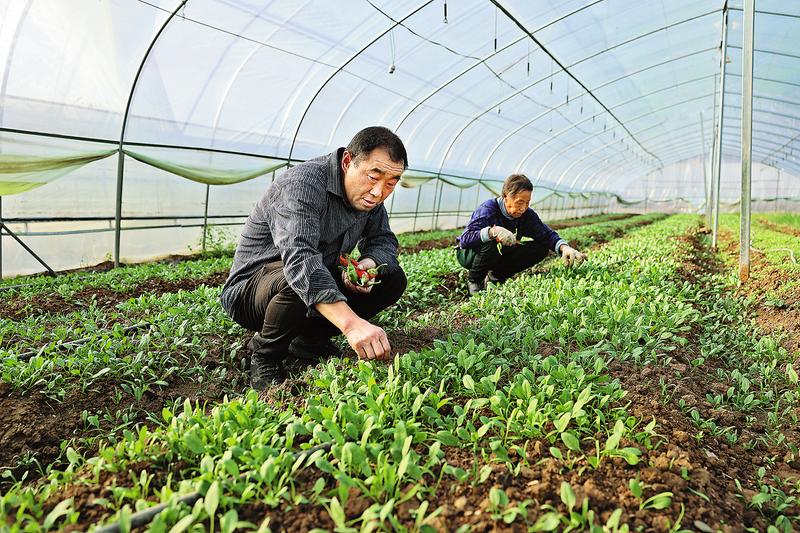 10月30日,在山陽縣色河鋪鎮(zhèn)陸家灣村大棚蔬菜基地內(nèi),工人正在對大棚蔬菜進(jìn)行田間管理。近期,該基地內(nèi)辣椒、豆王、莜麥菜、圣女果陸續(xù)成熟,每天可產(chǎn)出300多公斤蔬菜,帶動每位務(wù)工人員每天收入80元。(記者 李敏 攝)