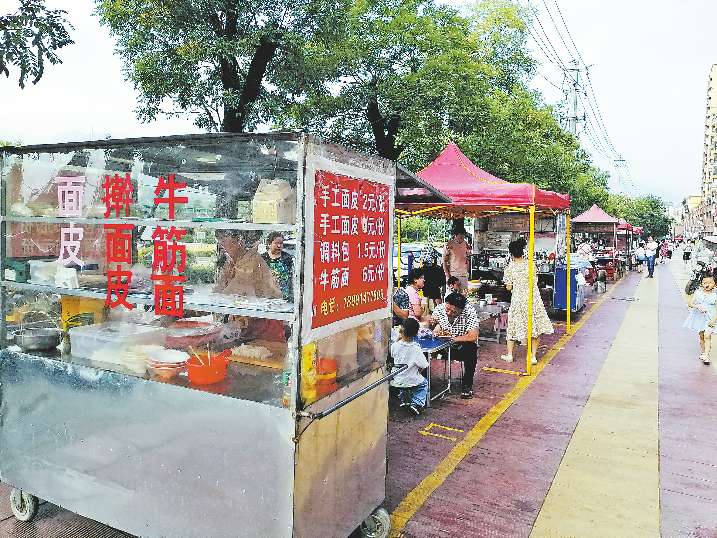 “水煎包子、豆腐腦”“廣東腸粉嘗一碗”“米皮、稀飯、肉夾饃”……小攤點(diǎn)商戶的叫賣聲此起彼伏、一張張真誠(chéng)的笑臉、在朝霞中愈發(fā)燦爛。