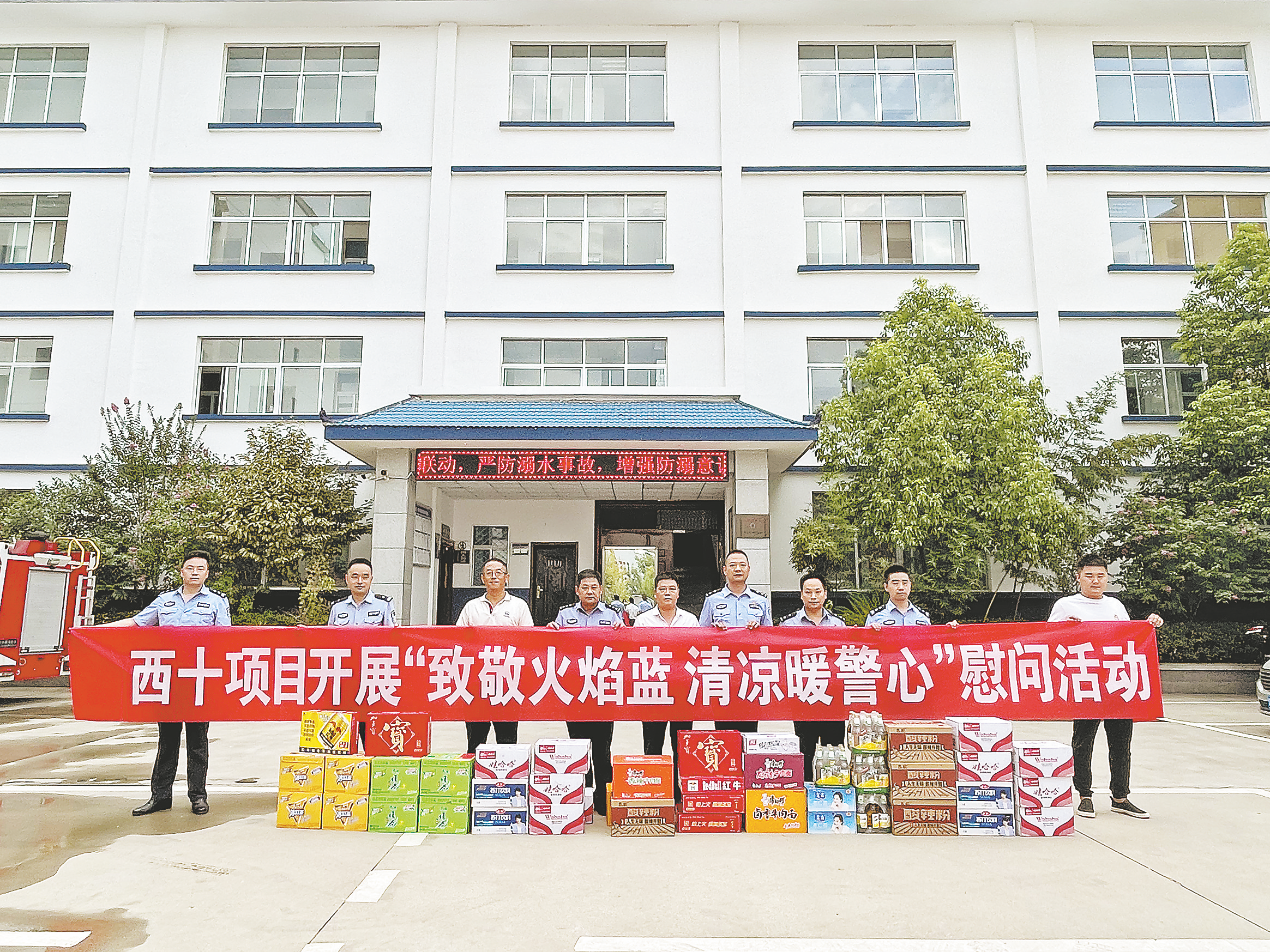 8月15日,西十高鐵項目黨支部前往山陽縣漫川關(guān)、法官等地,開展夏日送清涼慰問活動,表達對一線公安民警及交警的關(guān)心和問候。(本報通訊員 索幸芝 攝)