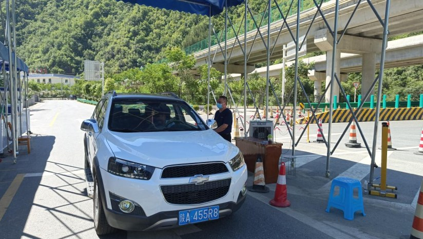 8月15日,時近正午,烈日炎炎。在水陽高速戶家塬出口,一輛輛客貨車輛正排隊通過疫情防控檢查站,山陽縣小河口鎮(zhèn)紀委書記、水陽高速戶家塬路口疫情防控檢查站工作組副組長陸濤正帶著隊員們一邊查驗過往車輛,一邊有序引導(dǎo)路口車流。