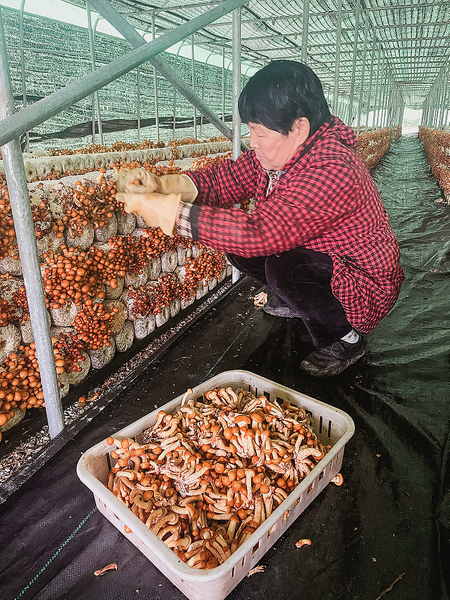 群眾正在采摘滑子菇