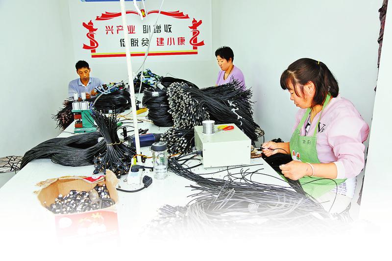 “目前受場地限制,我們分了3個房間來做,工人也招收的比較少。等明年新廠房建成,能夠解決六七十人進(jìn)廠工作。”李毓宏指著鎮(zhèn)政府旁邊的一塊空地說。現(xiàn)在,李毓宏每個月有3000元的收入,也能照顧家里父母、孩子,真正實現(xiàn)了樓上居住、樓下上班。