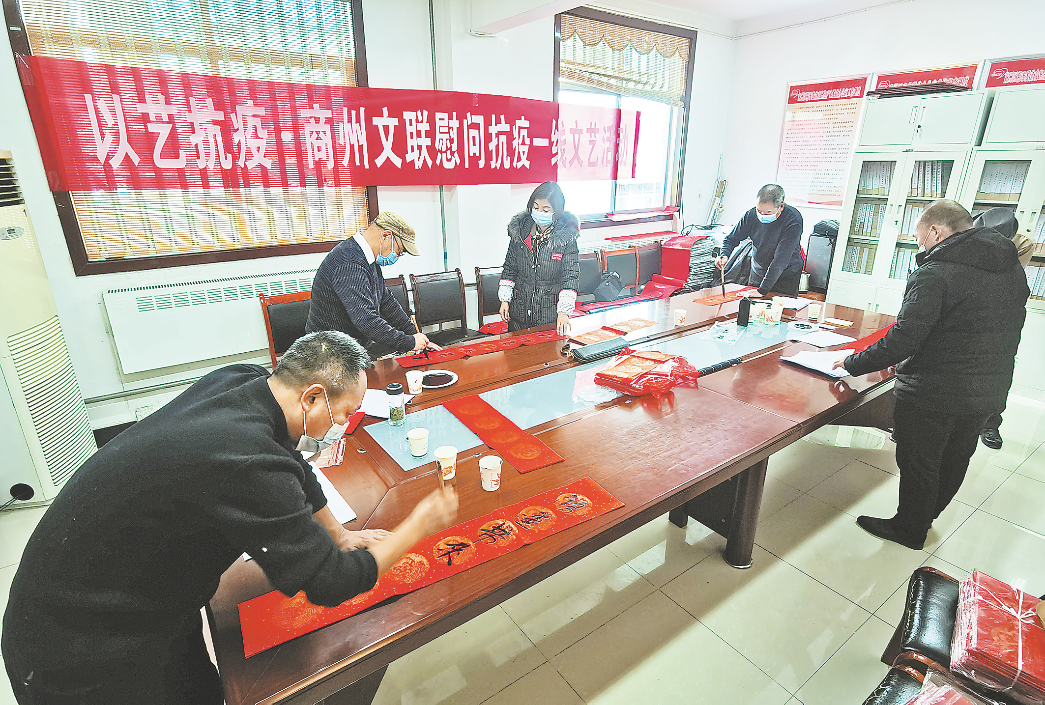 1月19日,以藝抗疫·商州文聯(lián)慰問抗疫一線文藝活動在商州區(qū)農(nóng)業(yè)農(nóng)村局舉辦,書法家們現(xiàn)場書寫對聯(lián)100多副、福字100多張,為防疫一線值守人員送去新春祝福。這項活動還將繼續(xù)在商州區(qū)范圍內(nèi)進行,讓更多的一線值守人員收到節(jié)日的問候。