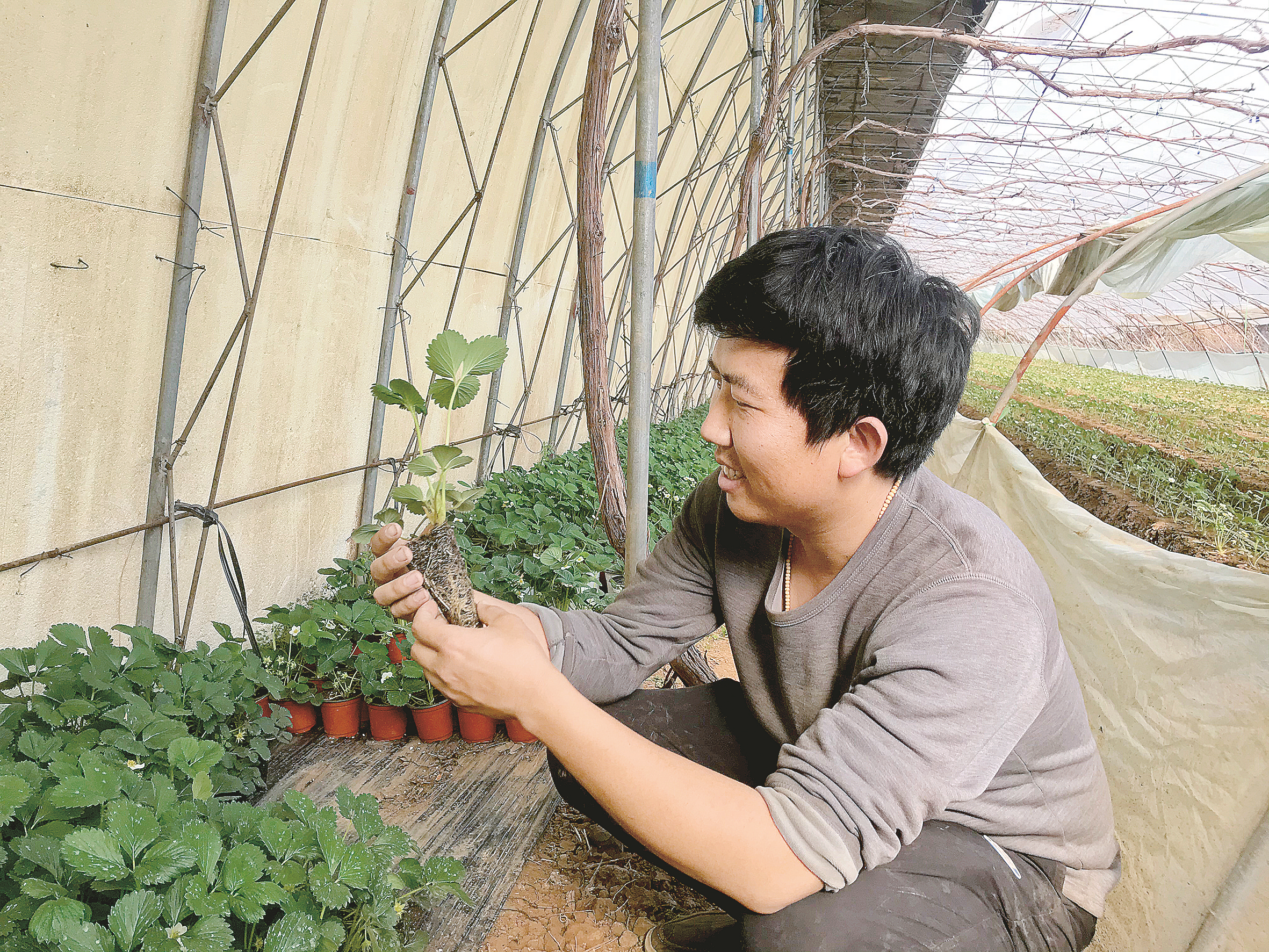 今年29歲的張騫是退伍軍人,2015年,他去山東壽光系統(tǒng)學(xué)習(xí)了草莓種植技術(shù)之后,就從父親手里接管了這個生態(tài)農(nóng)業(yè)休閑園。