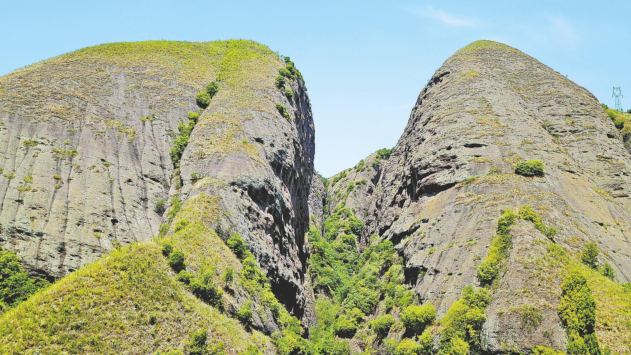 從夜村鎮(zhèn)過丹江后,沿水泥路進(jìn)入澇峪溝村,我們就被一處形如二指的石山吸引,當(dāng)?shù)厝罕娬f這叫二指山。這座石山和道路對面的山體形成了一座天然的山門,奇特的造型像是單手比出勝利手勢,在歡迎游客的到來。順著二指山旁的道路繼續(xù)前行,在山谷入口不遠(yuǎn)處,左手邊的山體頂部出現(xiàn)一個(gè)碩大的山洞,仔細(xì)觀看,竟有一點(diǎn)星光在閃爍。沿水泥路向前,路邊山體圓潤,分別向東西方向自然散開,整體除了少量綠色植被以外均呈現(xiàn)暗紅色顆粒狀。高聳的山體相對而立,光影之下像兩個(gè)情人含情脈脈對視著互訴衷腸,又像兩個(gè)狹路相逢的武士怒目而立。在部分山體中部還不規(guī)則分布有連片山洞,山洞洞口呈人為開鑿的四方形。車行約3公里,山谷沿線并沒有人家居住,儼然一處秘境,只有附近的村民在此養(yǎng)蜂、養(yǎng)羊,發(fā)展產(chǎn)業(yè)。山谷深處僅有幾戶人家,讓整個(gè)山谷更加幽靜神秘。