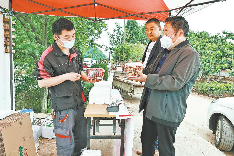 “咱也跟上流行趨勢,采取‘線上+線下’兩種模式銷售。快遞企業(yè)就駐扎在村上,線上下單,線下立即采摘發(fā)貨,方便得很。”楊闖說,“近一周來,我家已經(jīng)銷售了400多斤櫻桃,其中線上售賣了20多單。”