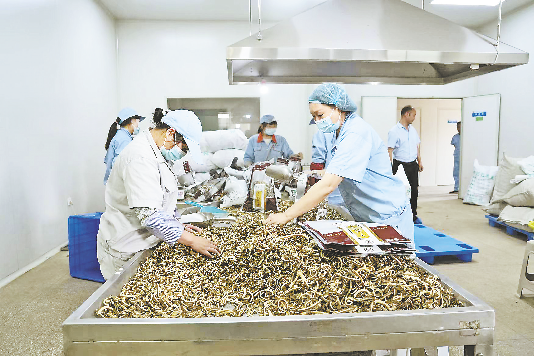 在陜西康城藥業(yè)股份有限公司生產(chǎn)車間內,工人正在加工中藥材。
