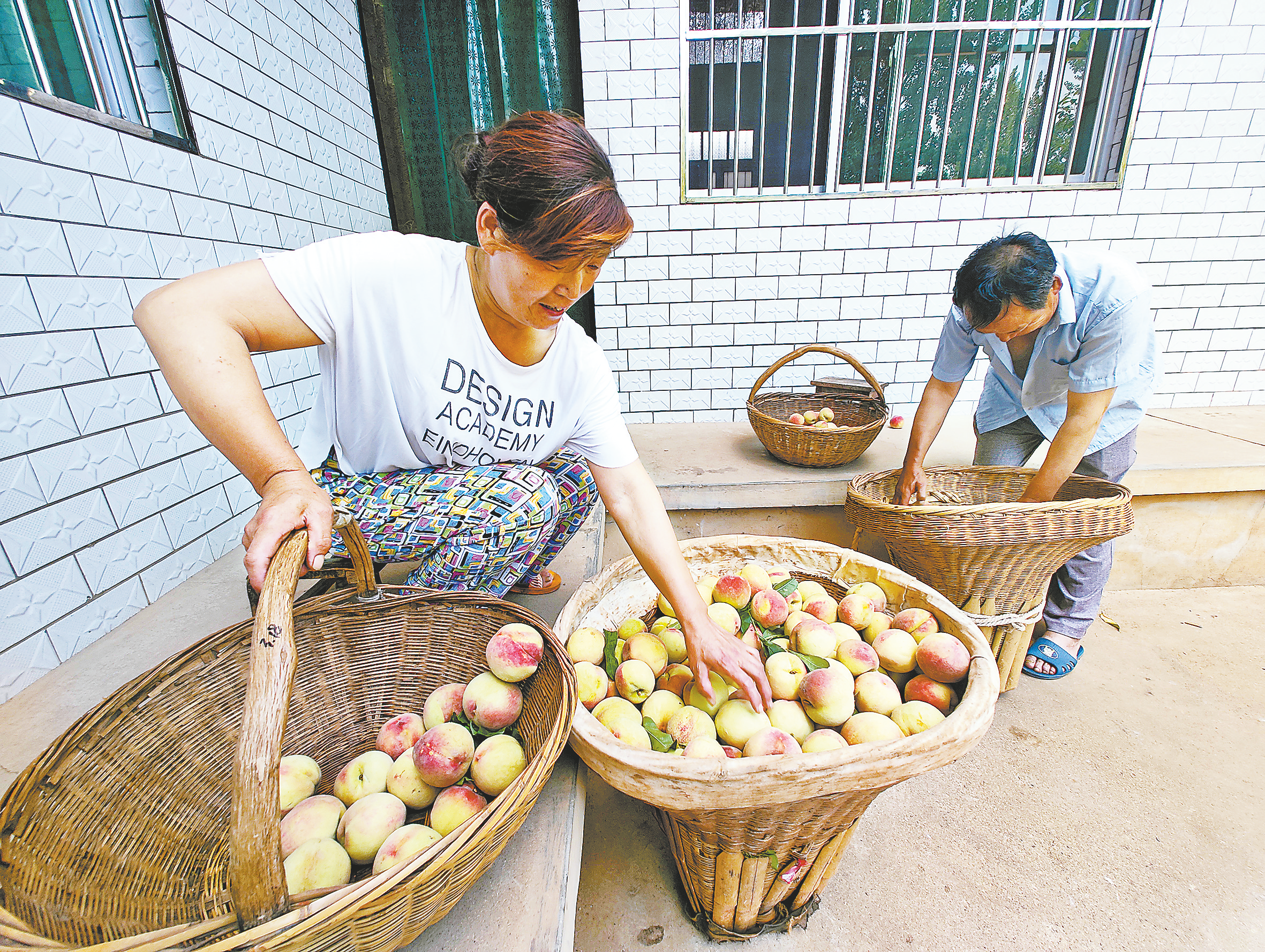 張青良與妻子分裝桃子
